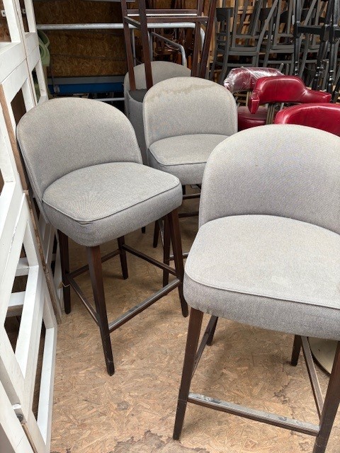 - Degelijke barkruk gestoffeerd in een grijze project stoffering.